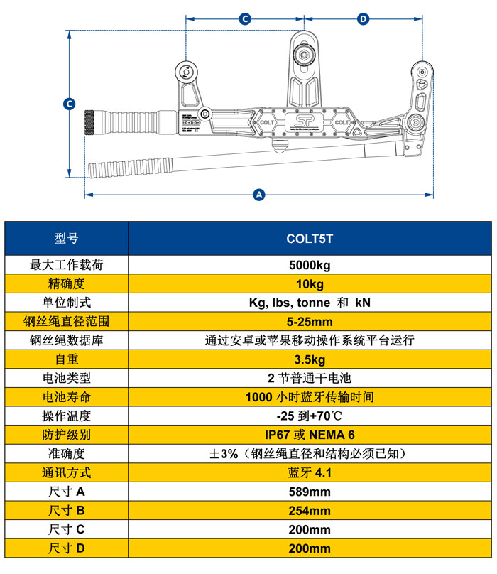 速得COLT智能測繩器是一種輕型的鋼絲繩拉力快速監測設備,適用于拉力值不超過5000kg且繩徑不超過25mm的各種情況下。