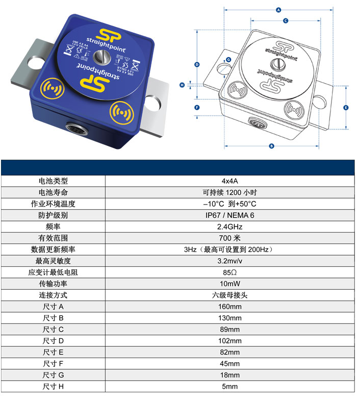 此產品在結構上配裝有我們的SA700C無線信號傳輸器,用于監測和記錄負荷物沿其他速得智能設備設計受力方向移動的距離大小。