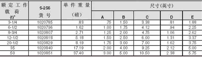 備注:試驗載荷最大為2.5倍的額定工作載荷;極限拉伸載荷最小為5倍的額定工作載荷。