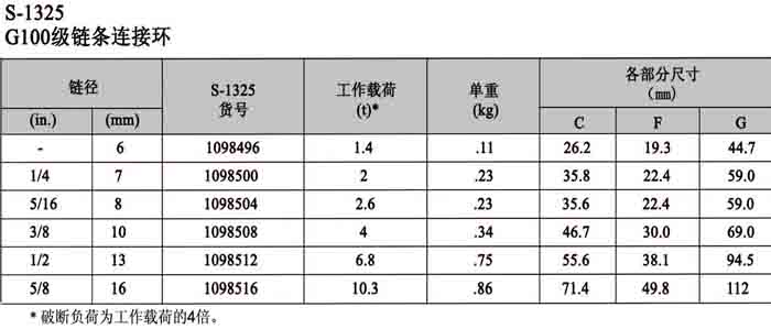 S-1325 G100級鏈條連接環產品詳情: 請致電 13931305891,email:info@skiplifting.com