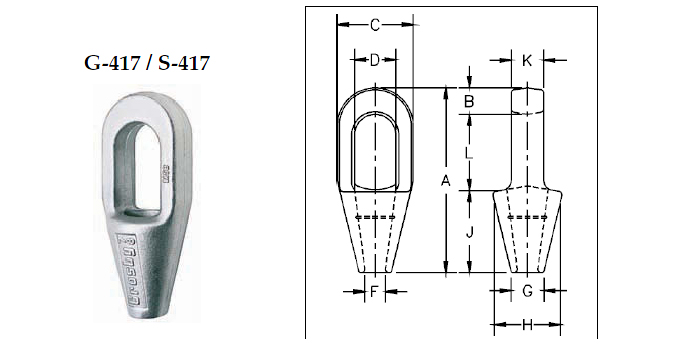 • 粗鋅承插端可達(dá)到目錄中鋼絲繩強度 100% 的額定功效。額定值基于建議使用的 6 x 7、6 x 19 或 6 x 36、IPS 或 XIP(EIP)、XXIP (EEIP)、RRL、FC 或 IWRC 鋼絲繩。使用最少股數(shù)構(gòu)造的鋼絲繩(如 1 x 7)需要特別注意承插吊籃是繩股直徑的 5 倍或鋼絲繩直徑的 50 倍,以兩者中較大者為準(zhǔn)。