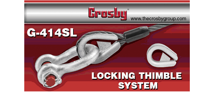 現(xiàn)場作業(yè)時(shí),我們經(jīng)常會發(fā)現(xiàn)有人私自以尺寸規(guī)格不匹配甚至是質(zhì)次的卸扣來替代正常操作使用。從作業(yè)安全的角度來講,這是十分危險(xiǎn)的,因?yàn)樗菀讓?dǎo)致作業(yè)中的整條鋼絲繩索具或整個(gè)吊索具系統(tǒng)產(chǎn)生結(jié)構(gòu)性的不穩(wěn)定趨勢。為防止出現(xiàn)這樣的安全風(fēng)險(xiǎn),我們推出了G-414SL雞心環(huán)鎖止系統(tǒng)。通過使用帶有鎖止功能設(shè)計(jì)(已獲得專利)的雞心環(huán),我們可以防止已加工好的成套鋼絲繩索具上的原裝卸扣被人為故意拆卸掉,這樣方可保證整條鋼絲繩索具在使用時(shí)其整體結(jié)構(gòu)的完整性和穩(wěn)定性。