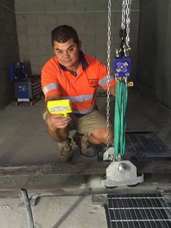 HES公司的項目經理解釋道,我們利用了公司特有的一種表面安裝測試軌道,通過與合成纖維索具結索以達到試驗負荷測試所要求的額定負載水平。速得無線智能卸扣為我們節約了現場環境下很有限的凈空高度空間。