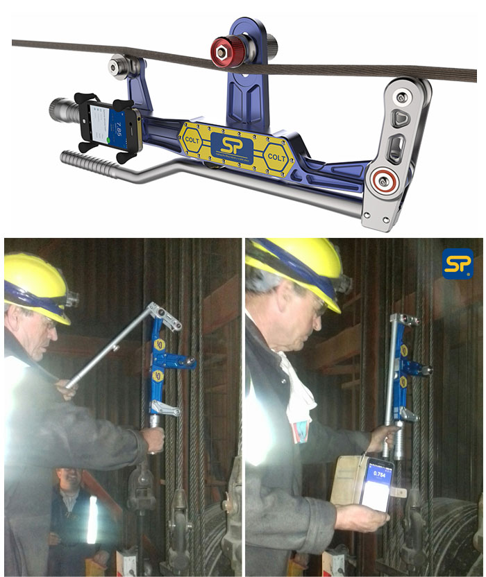 測試中,速得COLT測繩器夾緊已處在張緊狀態的鋼絲繩,然后鋼絲繩上形成的張緊力可以直接顯示在測繩器上。Tensology公司以前通過輥壓測定儀來完成此項工作。作為鋼絲繩相關專業服務提供商Tensology的一名總監,巴里摩德表示說, 該鋼廠最近招標了一項物料提升搬運系統舊繩改造項目,包括配重和其他一些系統零部件都需要進行替換。以前使用很多年的輥壓測定儀因為不能直接提供讀值也在設備改造更換范圍之內。而且,操作者需要參考有關的校準圖,每次安裝時此工作都需要兩個人共同完成。