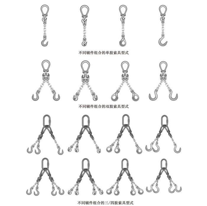 通常,吊裝鏈條索具(以下簡稱“吊鏈”)是由主環(huán)、連接環(huán)、鏈條及吊鉤等輔件連接而成,如果在使用中需要調節(jié)吊鏈長短的話,就需增加調節(jié)器來達到效果。這樣的吊鏈勢必會輔件多、自重大、成本高。集成主環(huán)集強力主環(huán),連接環(huán),抓鉤及調節(jié)器的主要特性和功能于一身。