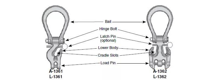 ● 根據OSHA,MSHA,ANSI/ASME B30.10和B30.9規(guī)則或安全使用碼使用安全銷。
