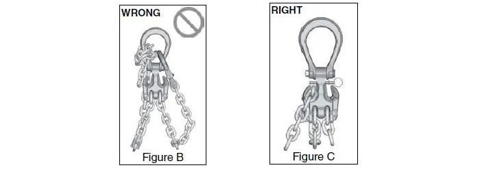● 不要將承重鏈條穿過基環(huán)以裝卸重物。(見fig B)