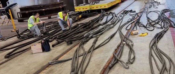 應(yīng)指定專職技術(shù)人員定期對鋼絲繩吊索進(jìn)行全面檢查,全面檢查的周期應(yīng)不超過12個(gè)月,對使用頻繁的鋼絲繩吊索應(yīng)根據(jù)使用頻繁程度,縮短檢查周期,并形成記錄。 檢測是否有達(dá)到報(bào)廢條件的鋼絲繩索具
