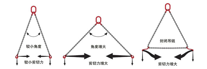 隨著角度的增加,多肢吊鏈會在被吊物上產生不斷加大的剪切力。