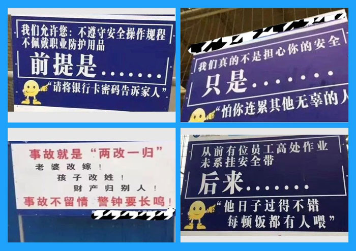 ……這些看起來像段子的警示標語,都來源于真實的安全事件,看完這些標語,您還敢在安全上馬虎嗎? 安全關乎生命,它不是一個笑話,但是如果漠視它,你就可能成為一個笑話。就如墨菲定律在安全中的啟示:不要心存僥幸,否則就會導致災難。即使發生造成1人死亡的事故,對于企業來說僅僅是一般事故,而對于死者本人、家庭,損失是“重大”的,而且絕對可以稱之為“特大”事故。所以安全對自已,對家庭是責任、是效益、是幸福、是一切,安全的最大受益者是我們自己!對別人、對企業,安全不光是態度和意識,它是一種承諾,更是專業行為,一種管理收益。