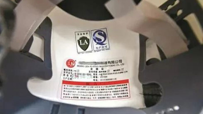 日期見帽殼內標簽,根據國家標準,每頂安全帽應有以下幾項永久標識:本標準編號、制造廠名、生產日期(年、月)、產品名稱(由生產廠命名)、產品的分類標記、產品的強制報廢期限。