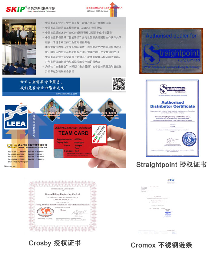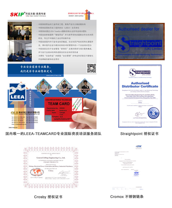 鄭重聲明:m.cnvvoqmb.cn為我公司合法合規(guī)官方網(wǎng)站。 GLE為美國CROSBY及英國Straightpoint在中國大陸合作伙伴, 進(jìn)口Kuplex8+10品牌索具系列輔件產(chǎn)品國內(nèi)供貨商!假冒偽劣者請(qǐng)注意國外制造商可能發(fā)起的知識(shí)產(chǎn)權(quán)法律訴訟風(fēng)險(xiǎn)。 凡屬利用我公司SKIP品牌提供相關(guān)產(chǎn)品與服務(wù)業(yè)務(wù),請(qǐng)及時(shí)與我司進(jìn)行真實(shí)性驗(yàn)證。驗(yàn)證郵箱:郵箱:info@skiplifting.com