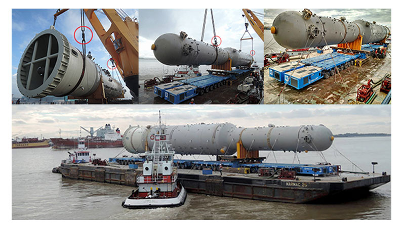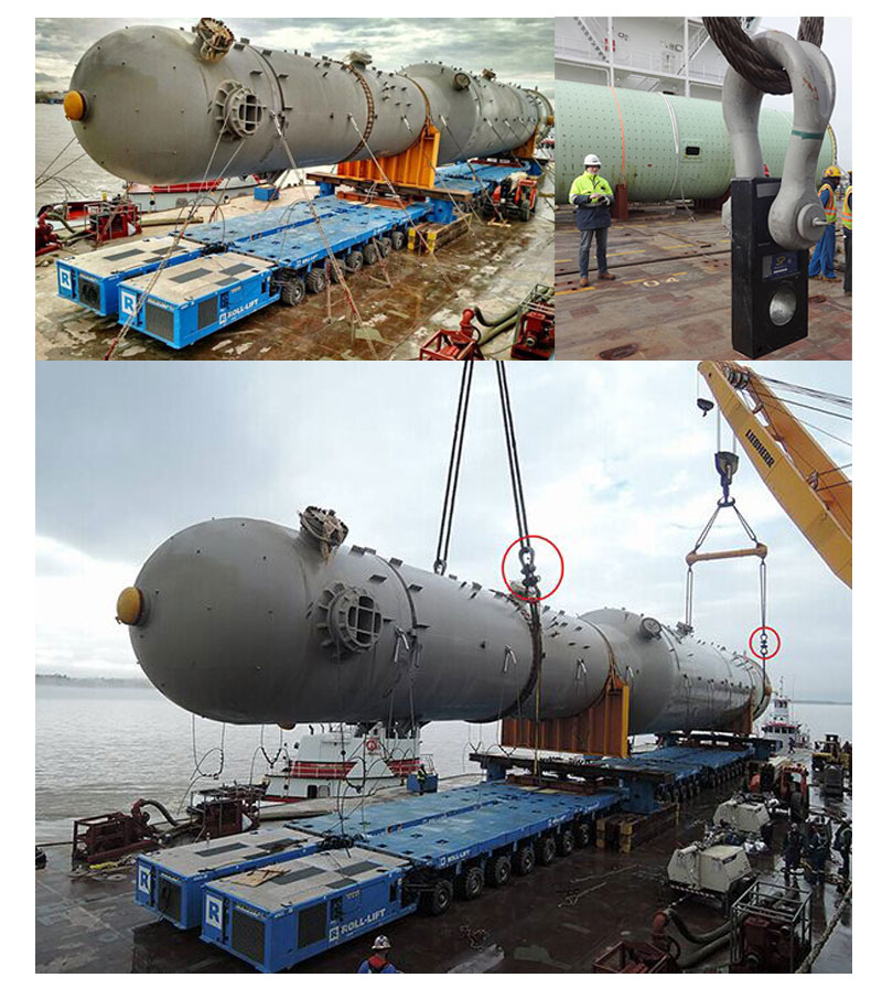 Duprey先生說,這兩套設備在中國進行裝載作業時所掌握的駁船負載重量信息非常不準確。因此,為了安全起見,我們在設備抵達目的港后,想再次對設備的重量進行一次準確的測量。僅就保障項目作業安全的方面而言,速得測力環顯示了其突出的重要性。更重要的是,當我們用速得測力環經過實際測重后,確認了我們實際測得的設備重量數據和制造商文件上提供的數據信息是一致的,這也就說明駁船起重機上監測到的儀器數據是不準確的。 Duprey said: “The load cells were crucial given that when we loaded the absorption tower and flash vessel in China the lift weight in the barge was drastically inaccurate so for safety reasons we wanted to weigh them again in New Orleans. Importantly, when we used the load cells to weigh the items at the port, the weight matched the documents of the manufacturer which told us that the measurements recorded by the barge crane instruments were incorrect.”